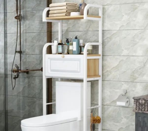 在马桶上方设置收纳架是很多家庭的选择,合理利用马桶上方的空间,可以存放纸巾、皮筋、小风扇等小物品,但要注意一定要安装在淋浴时碰不到水的地方,否则纸巾容易湿打打的。