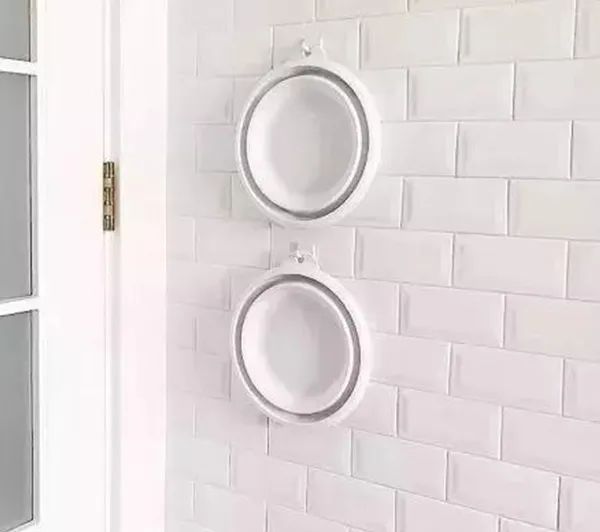如果觉得挂起来还是显得突兀,那可以尝试入手折叠伸缩脸盆,这种伸缩脸盆不仅易收纳、持久耐用,折叠起来后很薄,不会妨碍走路也足够美观。
