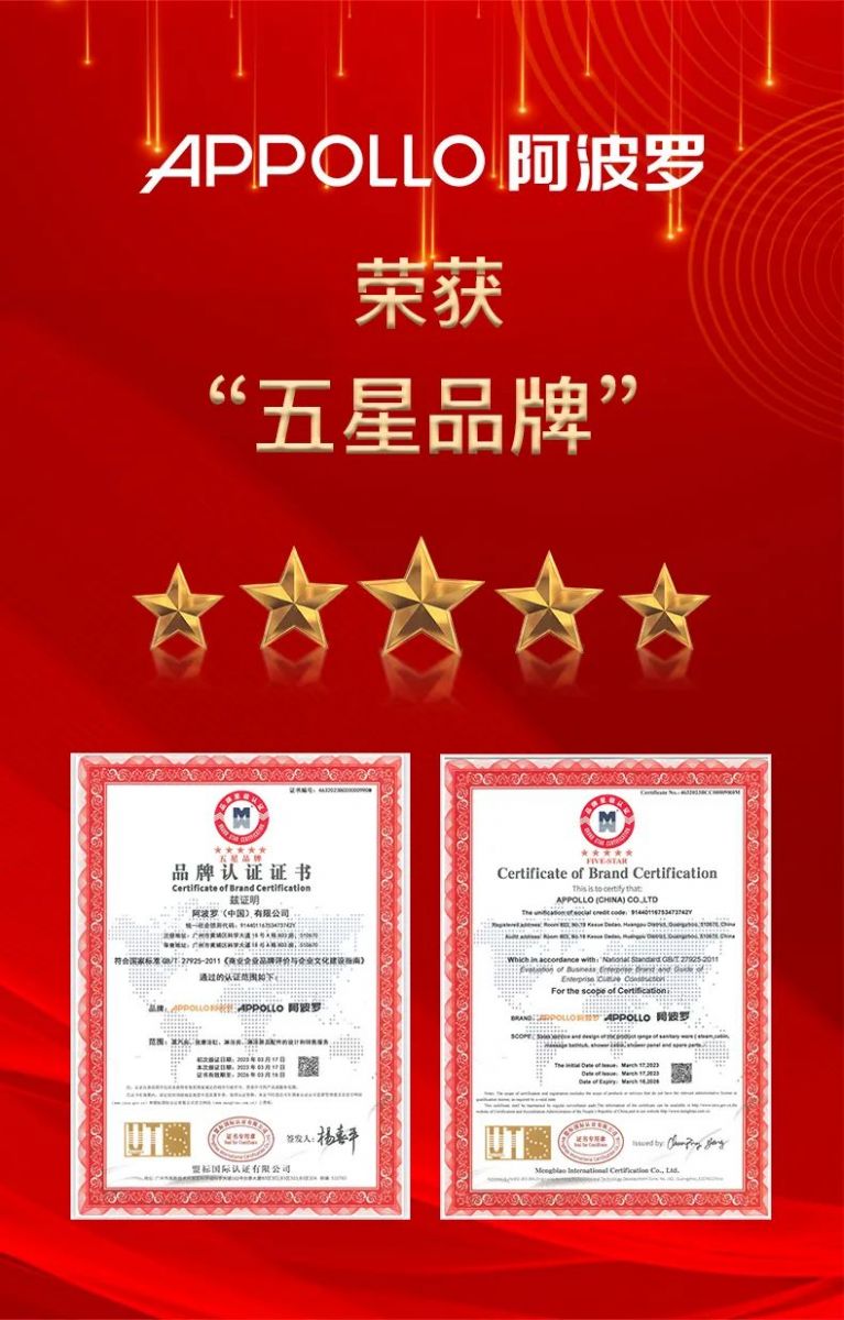 喜讯!APPOLLO乐发荣获五星品牌认证,品牌再度升值!
