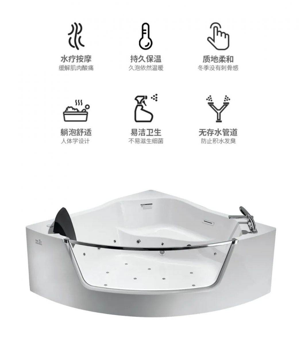 魔力喷按摩浴缸 360°万向冲浪按摩,水疗SPA放松疲惫,全铜主体,国家3C认证防爆钢化玻璃配置不锈钢扶手安全可靠,智能触控面板多种按摩功能一键切换,畅享舒适沐浴