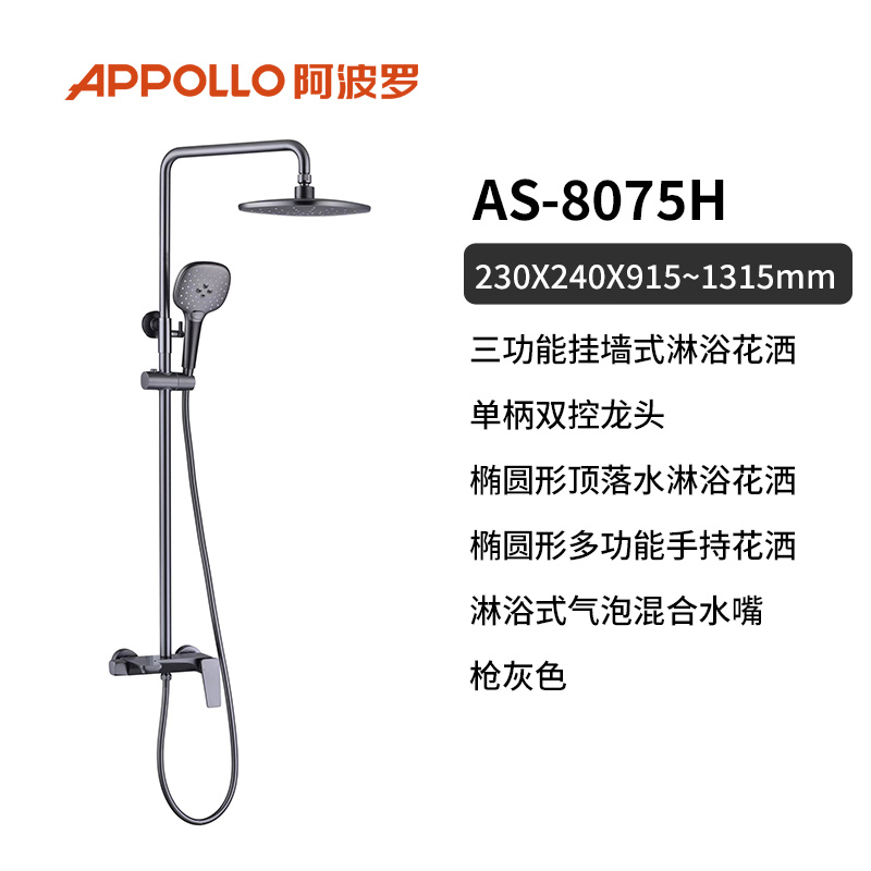 AS-8059H挂墙式淋浴花洒套装,作为现代卫浴空间的优选产品,集多种功能于一体,为用户带来极致的淋浴体验。